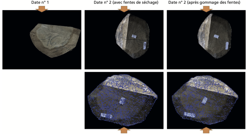 « La deuxième tranche du projet a aussi parfaitement rempli ses objectifs en identifiant les verrous à lever pour une utilisation opérationnelle car ce taux de reconnaissance est affecté dans certains des cas étudiés, poursuit Fleur Longuetaud. Par exemple, la présence de fentes de séchage, quand les grumes sont restées longtemps en forêt avec des épisodes de chaleur, va impliquer des modifications de la méthode. De plus, le déplacement des grumes entraîne un changement de perspective dans les prises de photos non négligeable, qui vient s’ajouter aux changements d’aspect très importants. Si la grume est purgée complètement à son extrémité, la reconnaissance ne fonctionne plus, mais ce résultat était attendu. » Une thèse en cours a pour objectif de résoudre les problèmes identifiés dans cette deuxième tranche du projet Biomtrace.