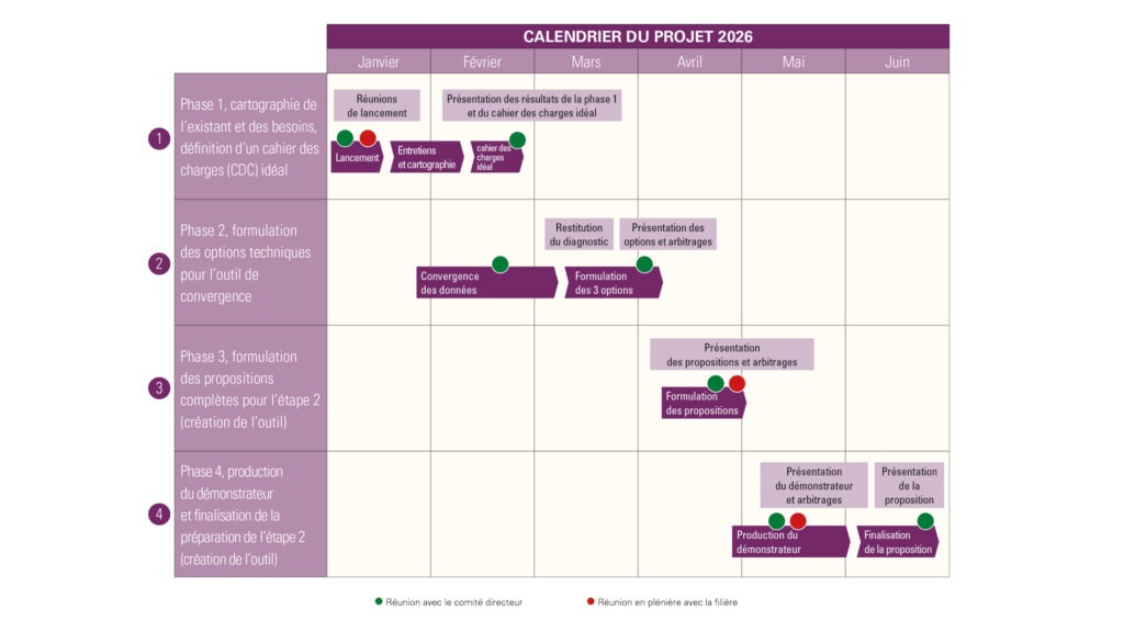 À la suite d’un appel d’offres, le consortium composé de Carbone 4, FCBA et Terriflux a été retenu pour conduire cette mission. Les travaux ont démarré en janvier dernier par des entretiens avec plusieurs organisations professionnelles de la filière ainsi qu’avec des experts, afin de mieux cerner les besoins et de préciser les fonctionnalités attendues du futur outil. Le comité de pilotage, composé des représentants de France Bois Forêt et du CODIFAB, assure le suivi opérationnel de la mission et les échanges réguliers avec le consortium. La première phase des travaux consiste à recenser les données disponibles ainsi que les différentes options de convergence entre les deux modèles pour cartographier l’existant. Elle comprend notamment la réalisation d’un inventaire des correspondances structurelles entre la VEM et le modèle développé par Carbone 4, incluant une comparaison des typologies de flux (nature, fréquence, niveau de granularité) et l’identification des liens fonctionnels entre les jeux de données. Cette phase inclut également une réflexion méthodologique visant à définir les modalités de réconciliation entre les données monétaires issues de la VEM et les données physiques issues du modèle de flux. Des entretiens complémentaires avec des experts de la filière pourront être organisés afin d’opérer certains arbitrages méthodologiques.